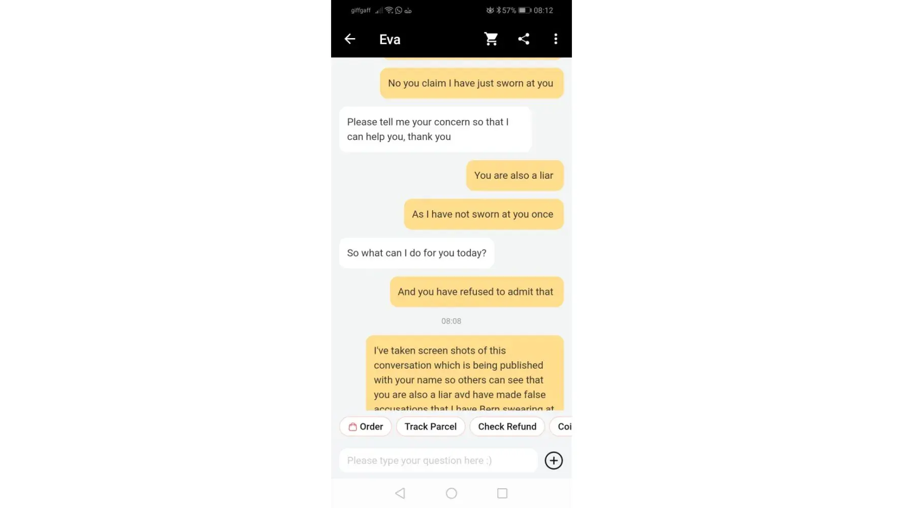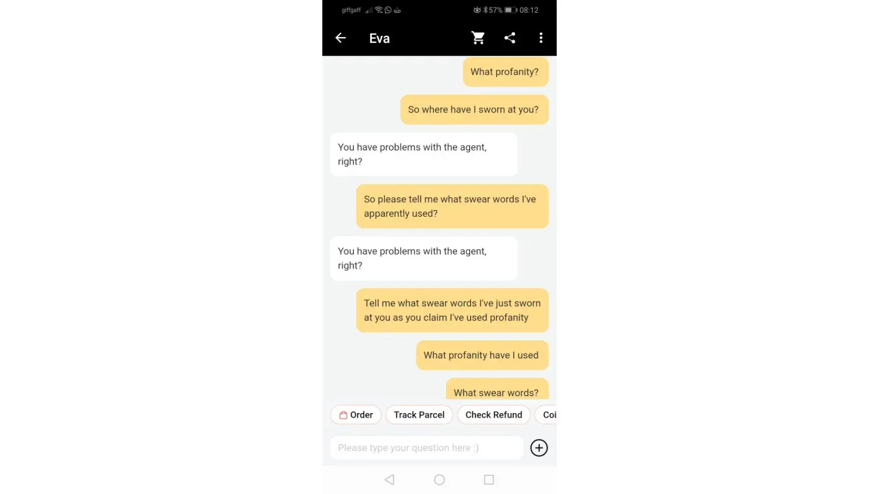 These are the names of some of the agents I regularly have the above issues with. I've provided screen shots as evidence that they make false accusations and lie claiming I'm swearing at them during normal enquiries.