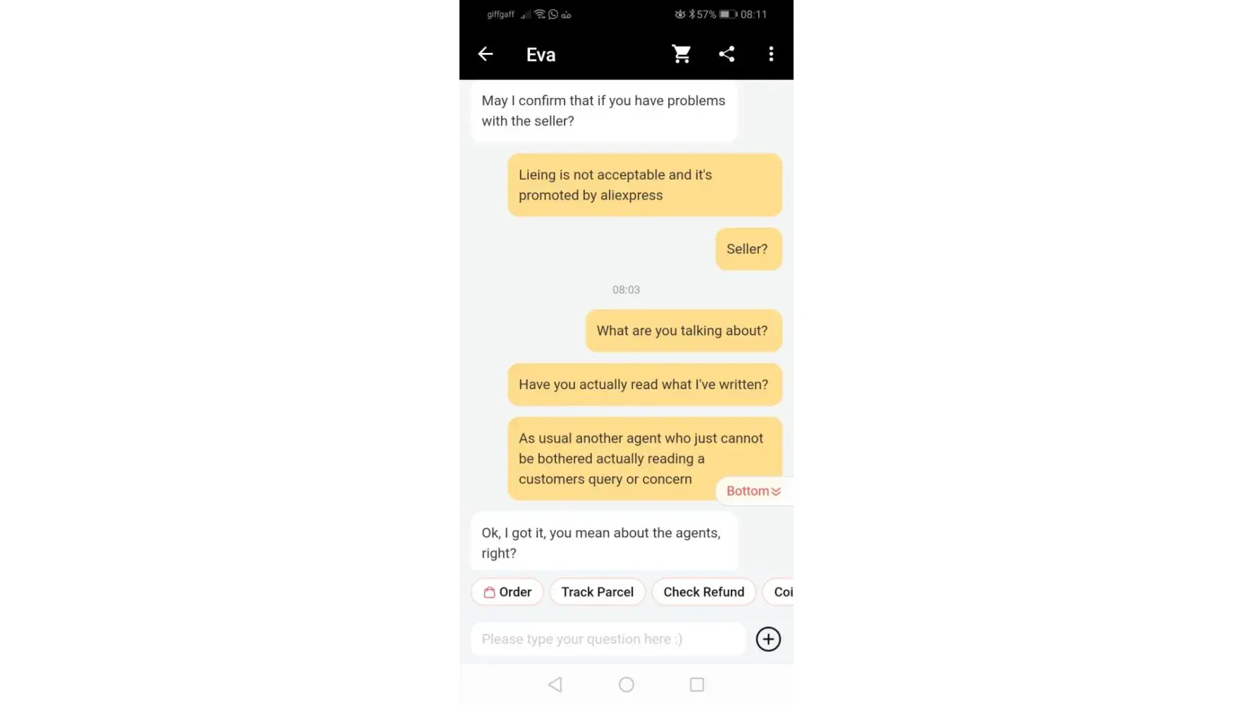 Unable to cancel the order, I opened a dispute, and the chat operators advised me to wait. In three different chats, none of them advised me to reject the item until a last operator told me that it was better to receive the item or I could be guilty of breaking the contract. By the third operator, I already knew that the answers given were not useful or even misdirecting, so they would just go "I'm glad I was able to help. Do you have any question? No? Well, thank you for contacting us?" all in the same second, to get disconnected, or kept looping between the same two answers over and over to wear you down! Like a robot (which I know they are not, because some expressed their frustration because I was not happy with the hollow answers.