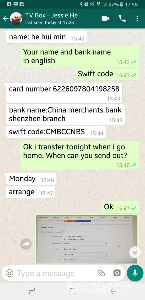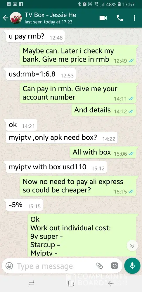 August 26, I bought 3 setop boxes from your merchant BoxTrip Electroniyx Store. I was asked to pay to merchant He Hui Min bank account directly the amount of RMB2118 bypassing Ali Express hence I do not have the order number. One of the sets was not working and was returned to the merchant twice. When the box was sent back to me, I can only use it for 2 days. The required passcode supposedly for one year expired.
