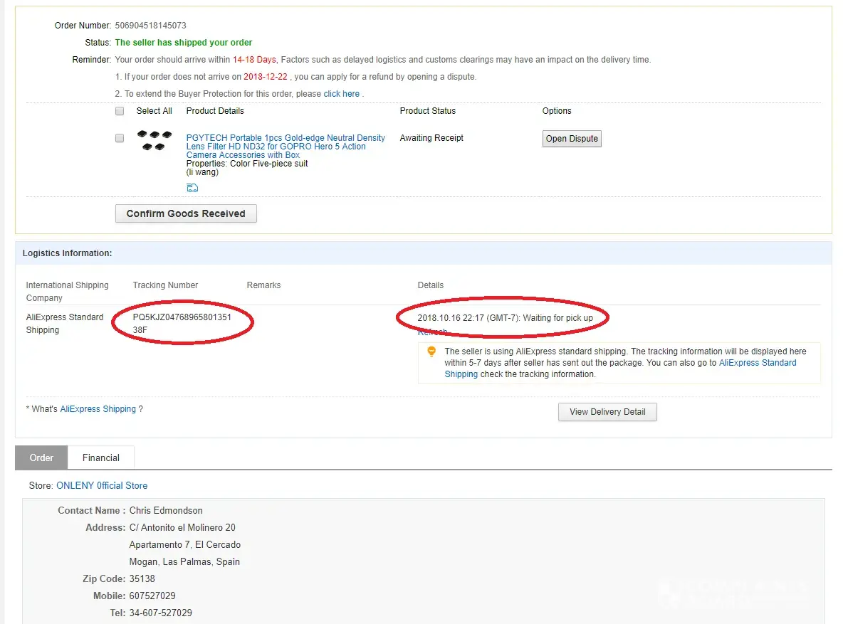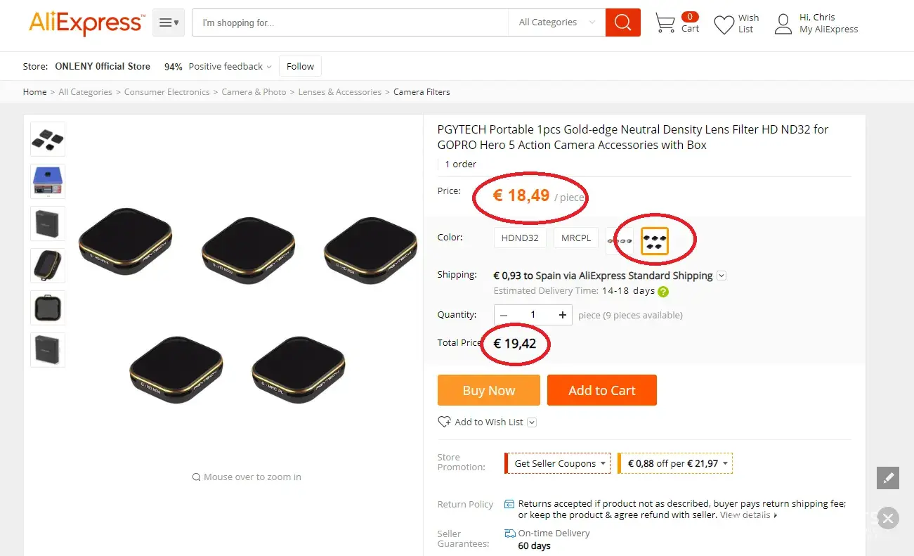 I made an order for ND filters for my GoPro. I had done a lot of searching, on the net, and found this shop on AliExpress where the prices were very good. I placed my order and the site accepted my order. Money was taken from my credit card. Then a day later I received the first lie (excuse).