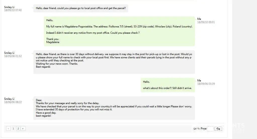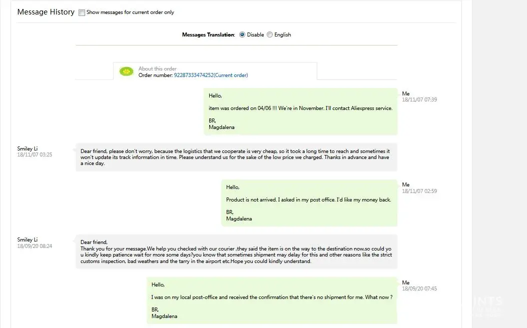 On Oct 7, I contacted Aliexpress customer service and provided the evidence from post office. Aliexpress customer service created another appeal and promised to solve it asap. However, nothing happened after that!