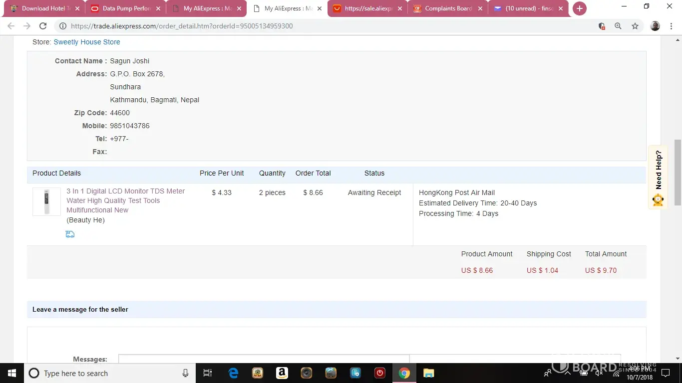 complaint of seller regarding shipping.