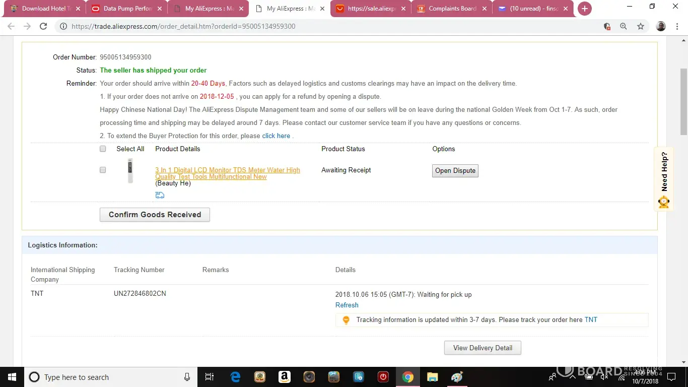 now I see that ALIEXPRESS closed the dispute, also talking about the shipping time.