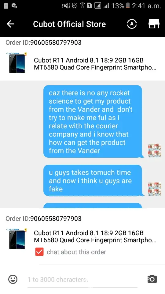 I don't even find the place to complain about in Aliexpress site...