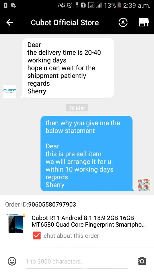 I was place my order on 20/03/2018 which is still udelivered and i also bagging with your staff sharry who always give me the lame excuses every time ask me to give more time now he ask me to cancel my order, why i cancel my order ? Why u guys take my payment when u didnt manage your orders? Now i want my product if you guys cancel my order then i will upload all the screen short of your live chat on media and i will ask to band your website