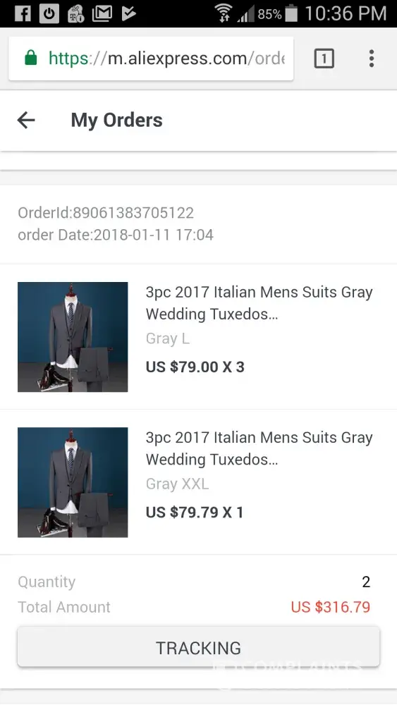 I placed an order for 2 jackets for a total of $44.98 on 11 November 2017 from Aliexpress. The order number is [protected]. The name of the store I bought them from is HUIHONSHE Costume Store.