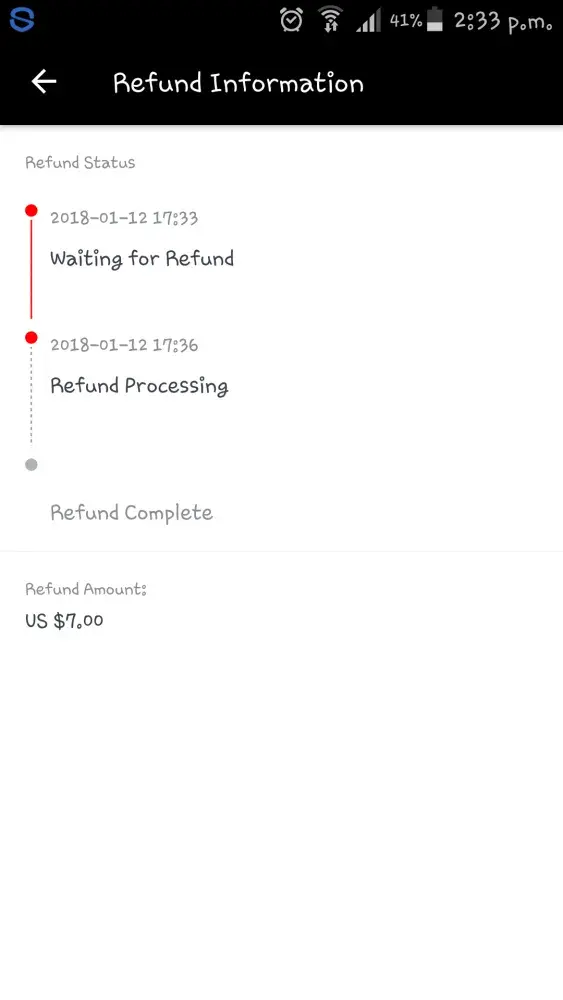 I made the order on Aliexpress number [protected]. Asked for a refund on 27th January.