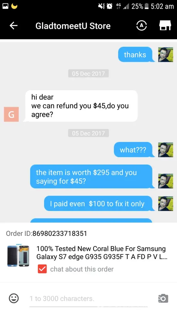 Seller offered me $45 For a product of $295.21. I said no at least 80% I need but they went on bargaining and now its been around 1 month or more they are offering $85 refund. They are just langering the process and not responding. Please help to make refund