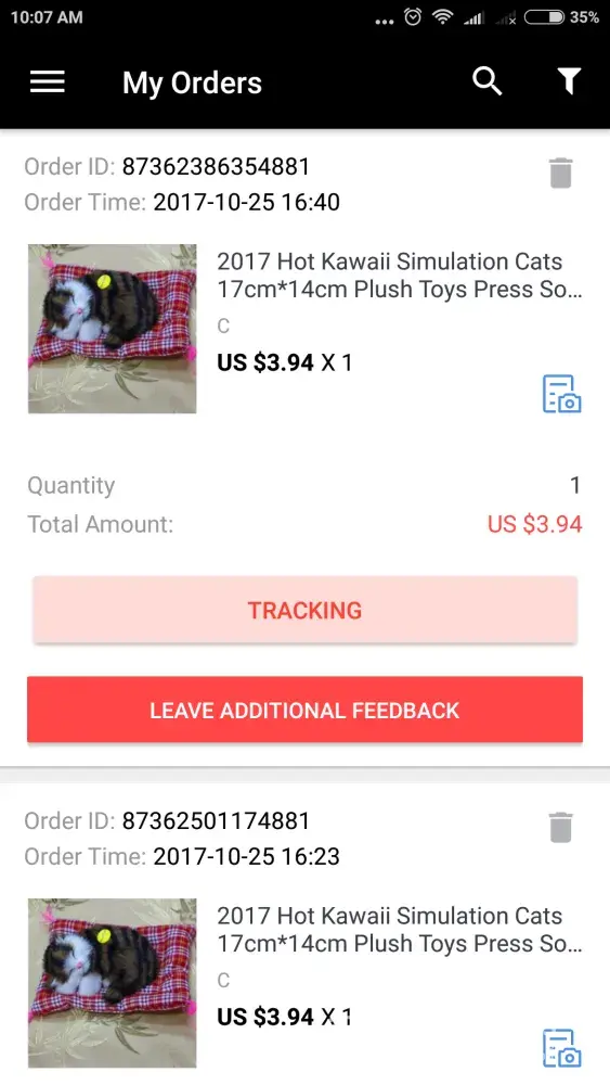 Order [protected] was made in July 2017 as part of a two order of cell phone covers, around 15USD each.