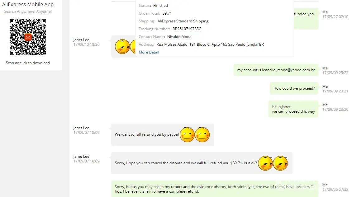 Hi. I’ve put this complaint to aliexpress via app 30 times but each time they said pending refund arrangement from the respective department.