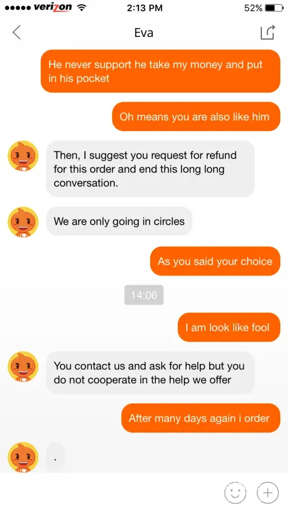 Contacted Aliexpress for non-cooperation from seller and was assured confidence for support