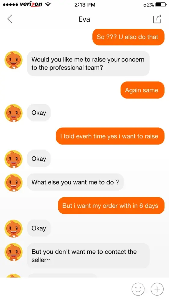 You may check yeh history of complaint of this item where hours and if times has spoken to your complaint receiving girl in the app.