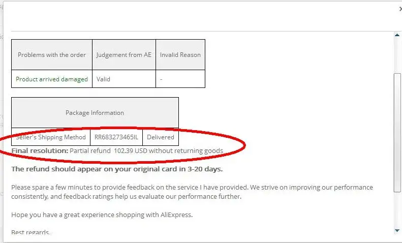 Order No:[protected] error on AliExpress Case Management Team resolution