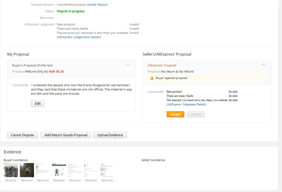 bought a bunch of models on aliexpress. the seller only sent half my order and the other half were counterfiet. when confronted they closed their store. dispute was denied even though i even had two letters from the official brand holder saying they were fakes. had to get bank chargeback.