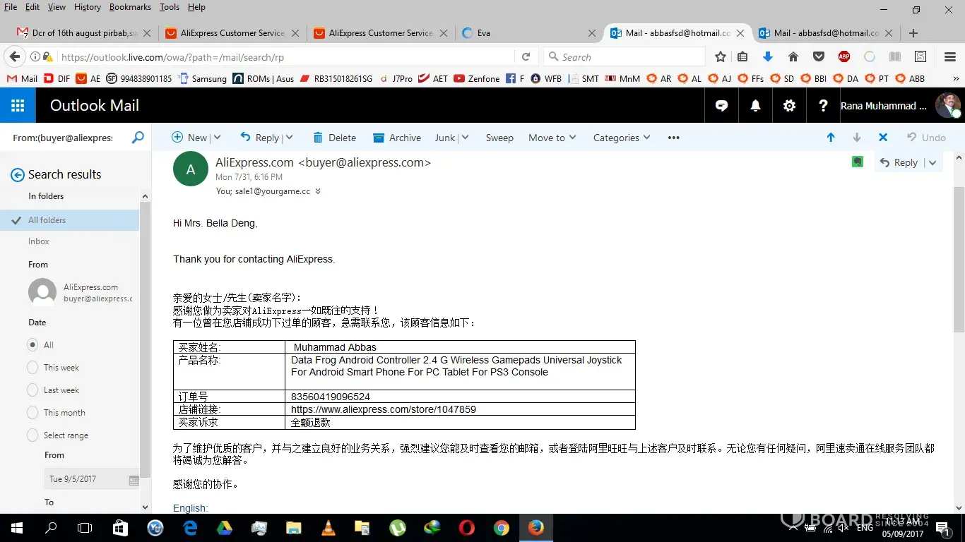 Please look into this matter and return back my money. I am an active customer of Ali express and you can check history for [protected]@gmail.com user. I have never done anything against your buyer protection program. Why I am getting troubled. I just want my money back for these orders ad my account activated again. Please do as needful.