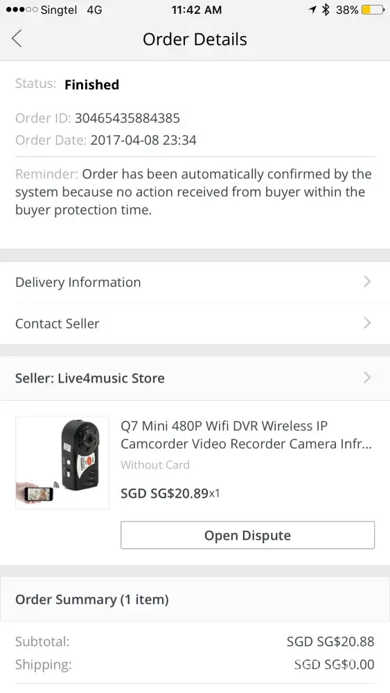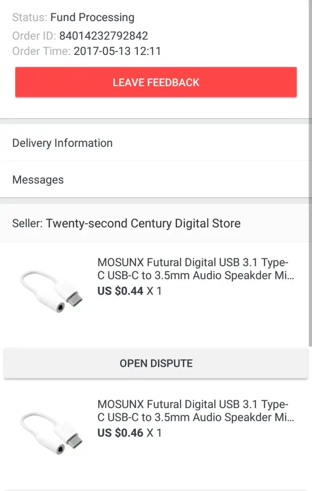 Order time & date: 23:51 Apr. 02 2017 is just one order out of ten and company says they opened three disputes ; I still havem't a refund or my ten orders. Given the run around. Order time & date: 23:51 Apr. 02 2017