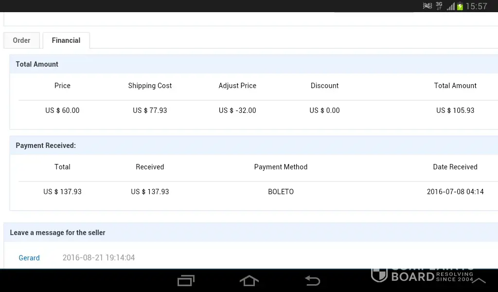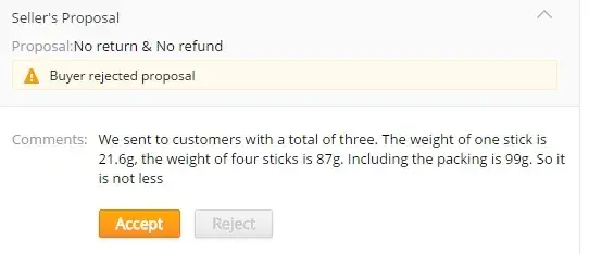 Then the seller changed the shipping method and reduced the price of shipping with US$ 32.00.