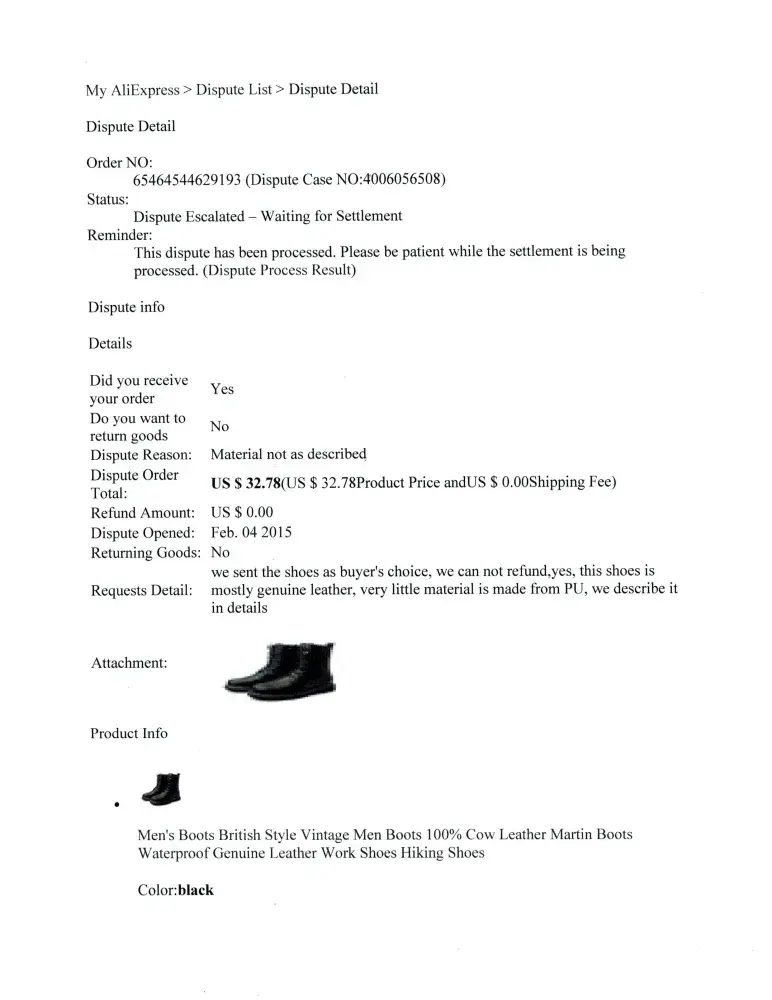 These SCAMMERS are selling counterfeit goods. Misrepresenting their advertisement to lure consumers into buying junk merchandise. I bought a boots from them that were advertised as 100 percent genuine Cowhide leather and was send 100 percent pleather boots. The company and sellers are jointly running fraud scams on the consumer and refuse to take back their products. Aliexpress.com does not honor their buyer protection and mediation is a joke. Even after the seller admitted to sending me pleather boots the company still released my funds to the seller. Other scams they are involved with is providing consumers with fake tracking numbers.