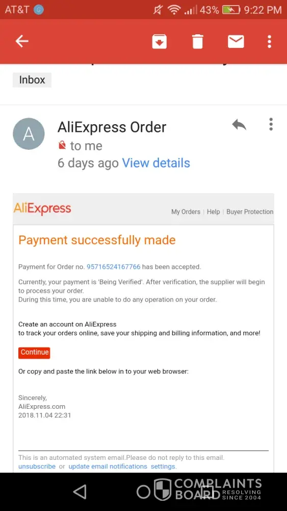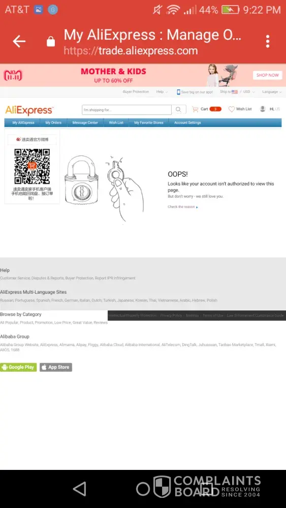 Aliexpress / Alipay do not respond to queries concerning Problems with an order.