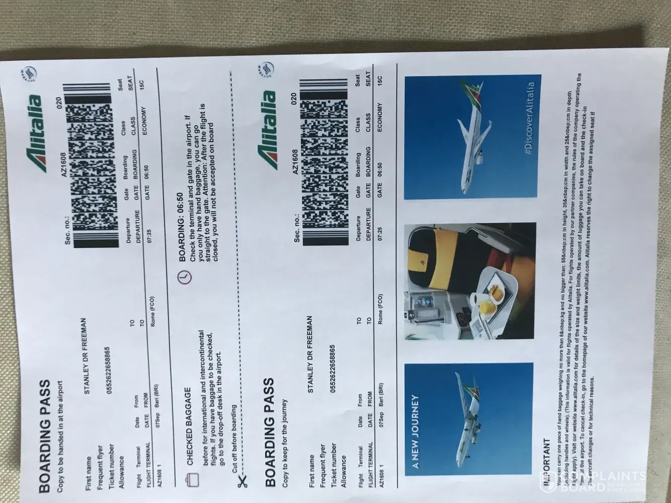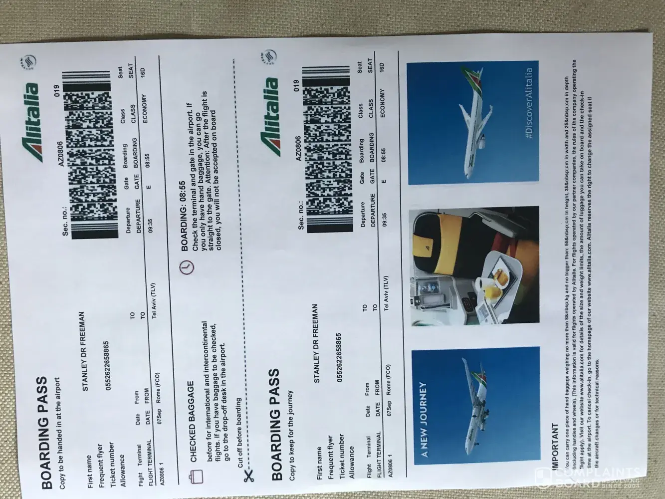 in relation to the flight AZ 078 from Rome to Barcelona on 28 September 2018.
