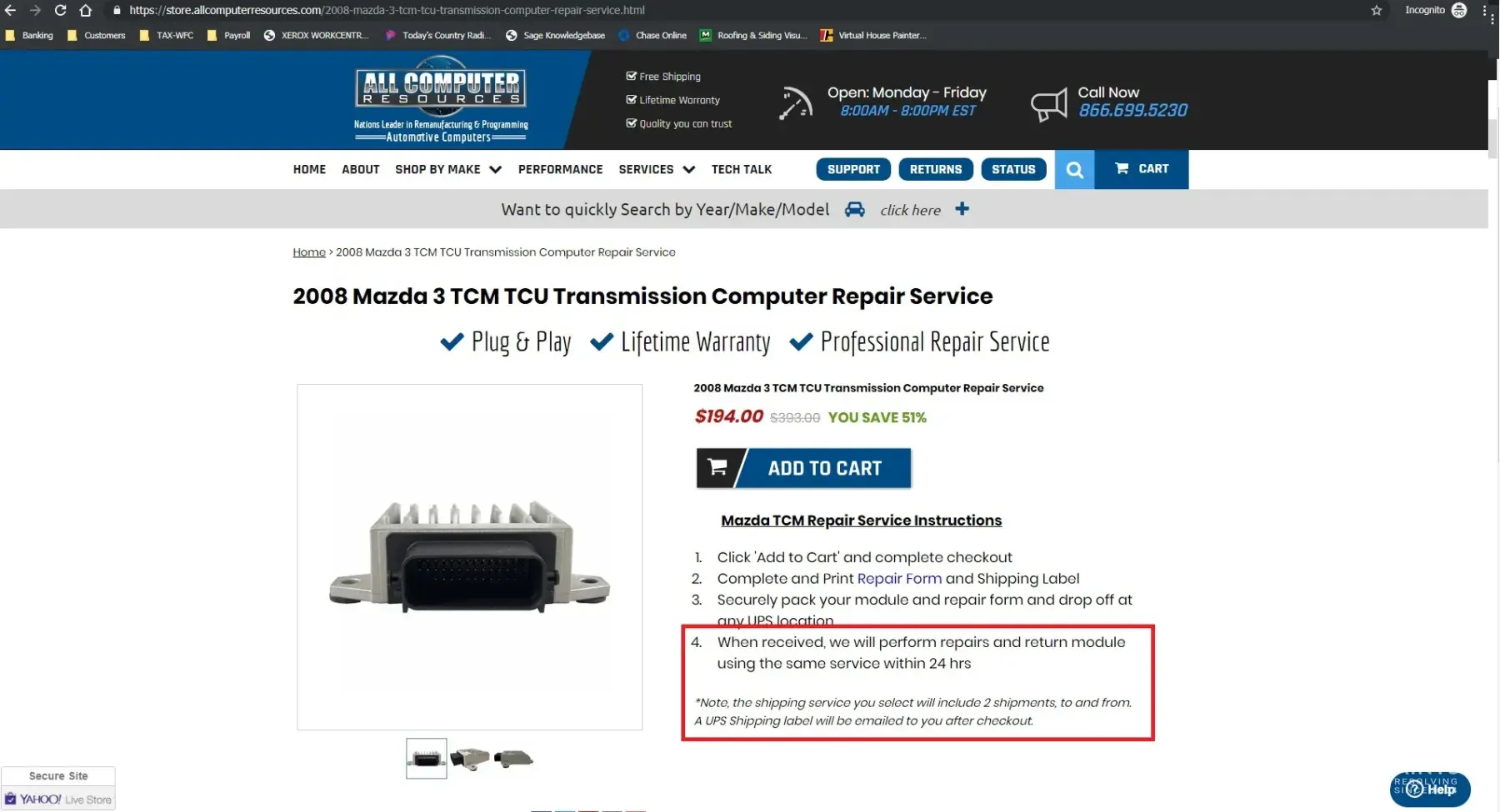 Unfortunately, I have to give one star, but they deserve none. Used this 'service', and I use this term loosely, because their website says they offer a lifetime warranty and: Mazda TCM Repair Service Instructions 1. Click 'Add to Cart' and complete checkout 2. Complete and Print Repair Form and Shipping Label 3. Securely pack your module and repair form...