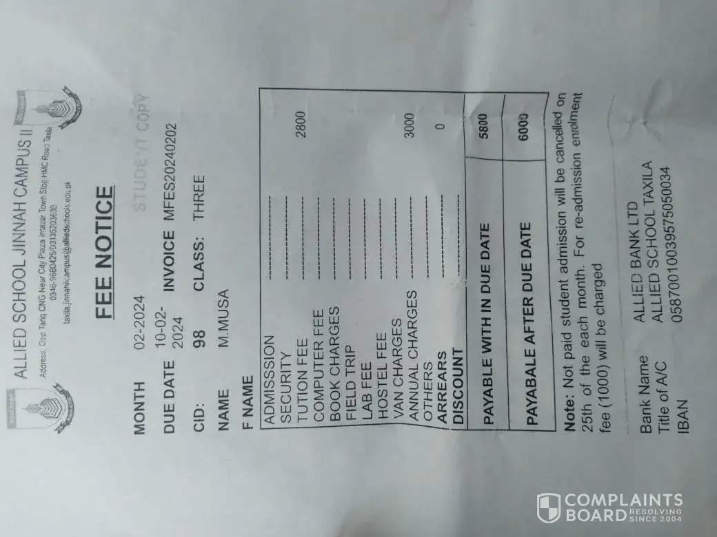 Allied Schools I m complaining about Allied school Jinnah Campus Okara.