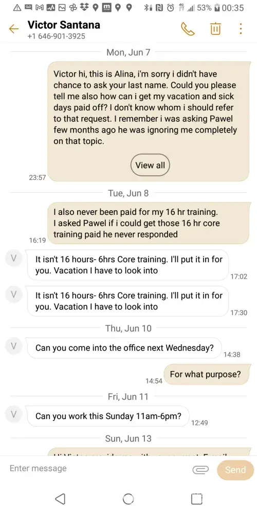 I'm writing to you on behalf of myself and the other guards not getting paid like we should. Thank you for your time.