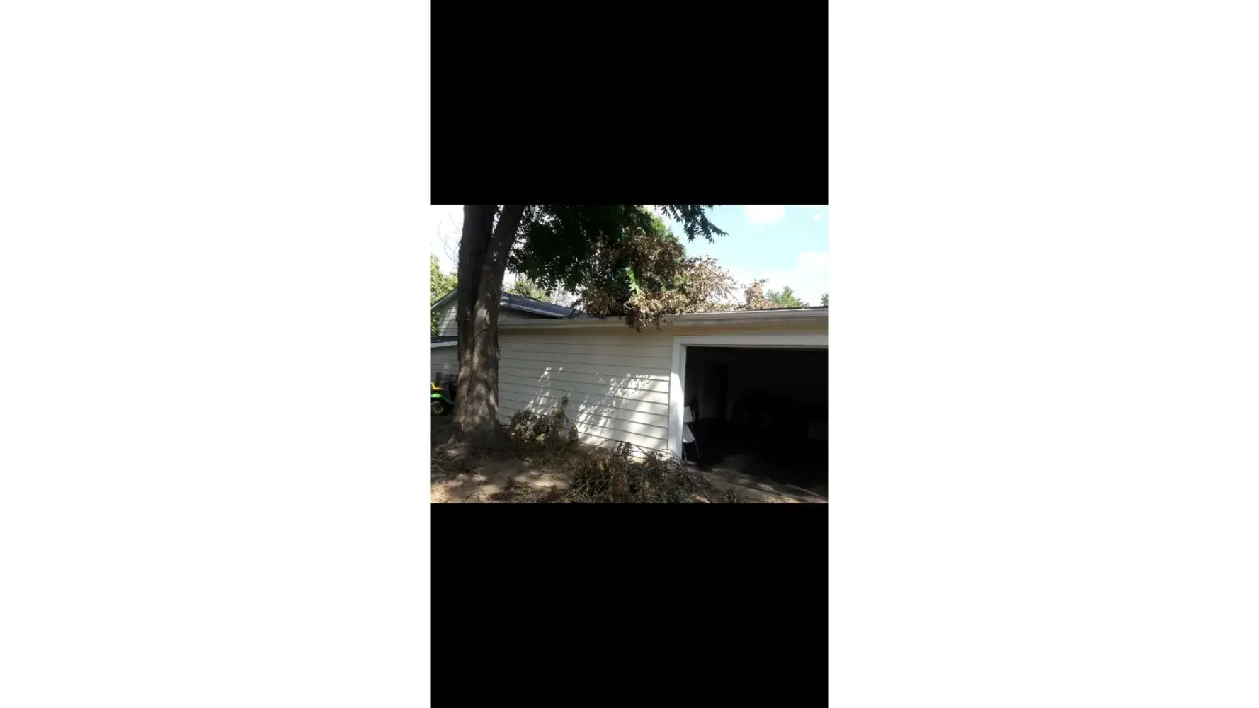 We protected the roof, we had it covered, and removed the tree, so that the tree/limbs would not fall on the house.