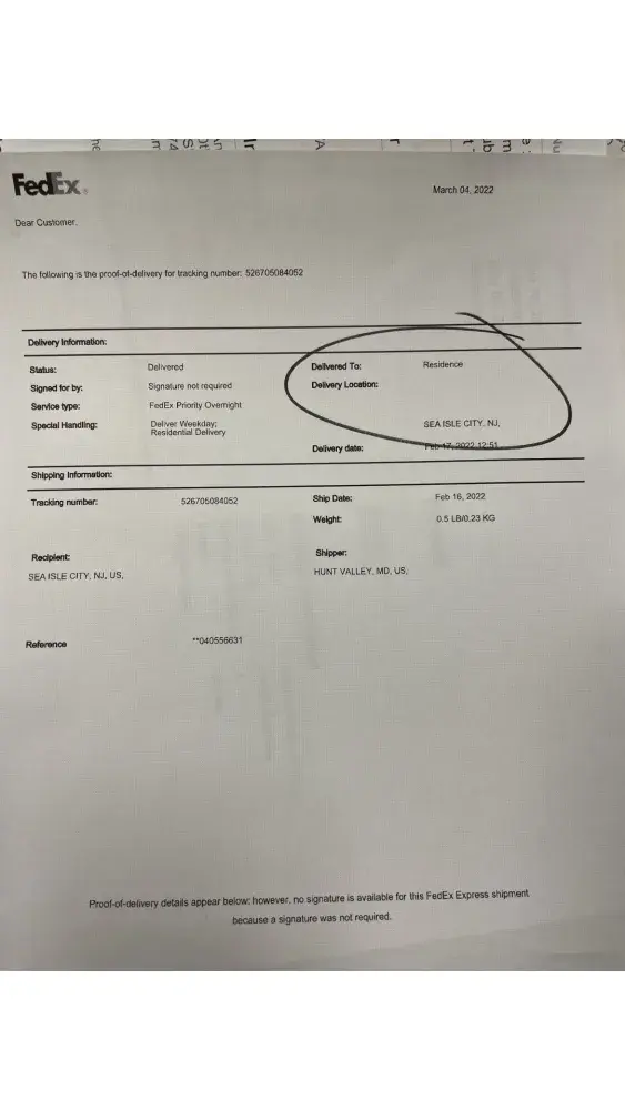 I requested that the title and lien release be sent to my "secure" post office box as I live in a rural area. I was told that the documents would be mailed to my post office box. The documents never came and when I inquired, Ally provided Fedex tracking number. The package was never delivered by Fedex. Fedex Proof of Delivery (see attached) shows "no" street address.