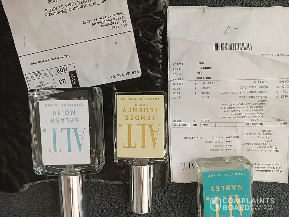 - While ALT Fragrances has a high level of trust, our investigation has revealed that the company's complaint resolution process is inadequate and ineffective. As a result, only 0% of 14 complaints are resolved. The support team may have poor customer service skills, lack of training, or not be well-equipped to handle customer complaints.