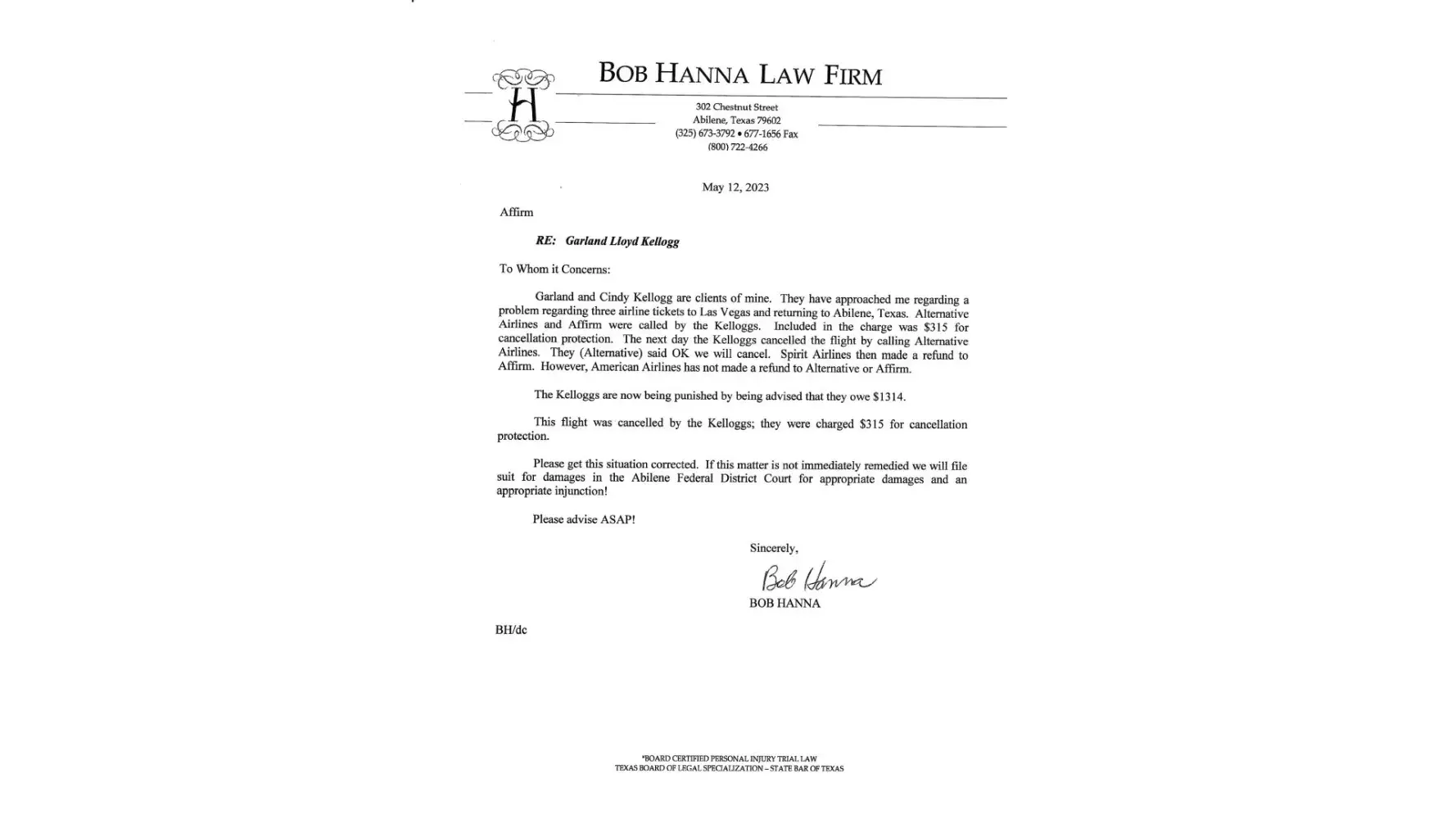 see attached lawyer letters