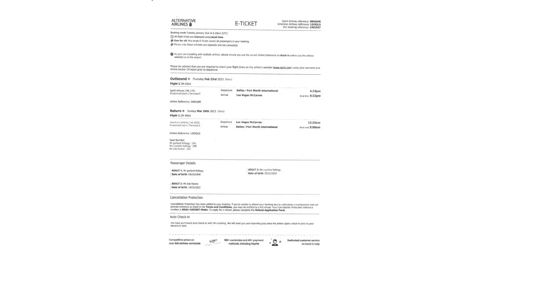 This Alternative Airlines is a FAKE company. I bought a ticket on 9th February 2022 for a flight on 16th. They never sent the flight ticket just discover from airport that the receipt is not part of their list.