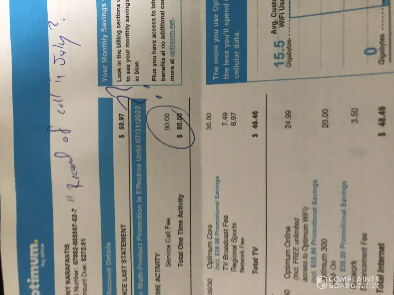Desired outcome: for Optimum to refund me the $746.82 to my Jet blue card
