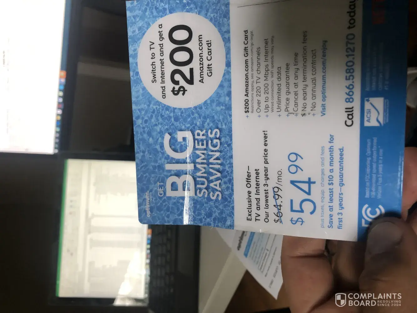Optimum internet new customers to receive 200.00 visa gift card