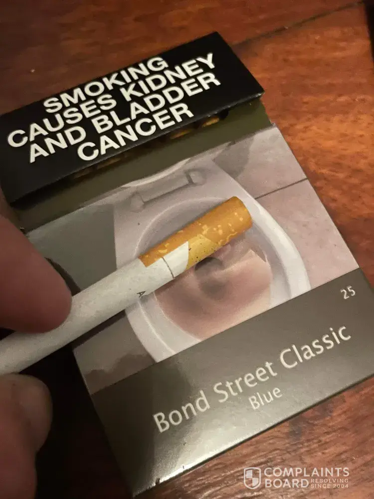 Desired outcome: Request reimbursement as this would not occur in a newly opened packet of bond street cigarettes