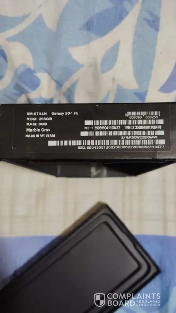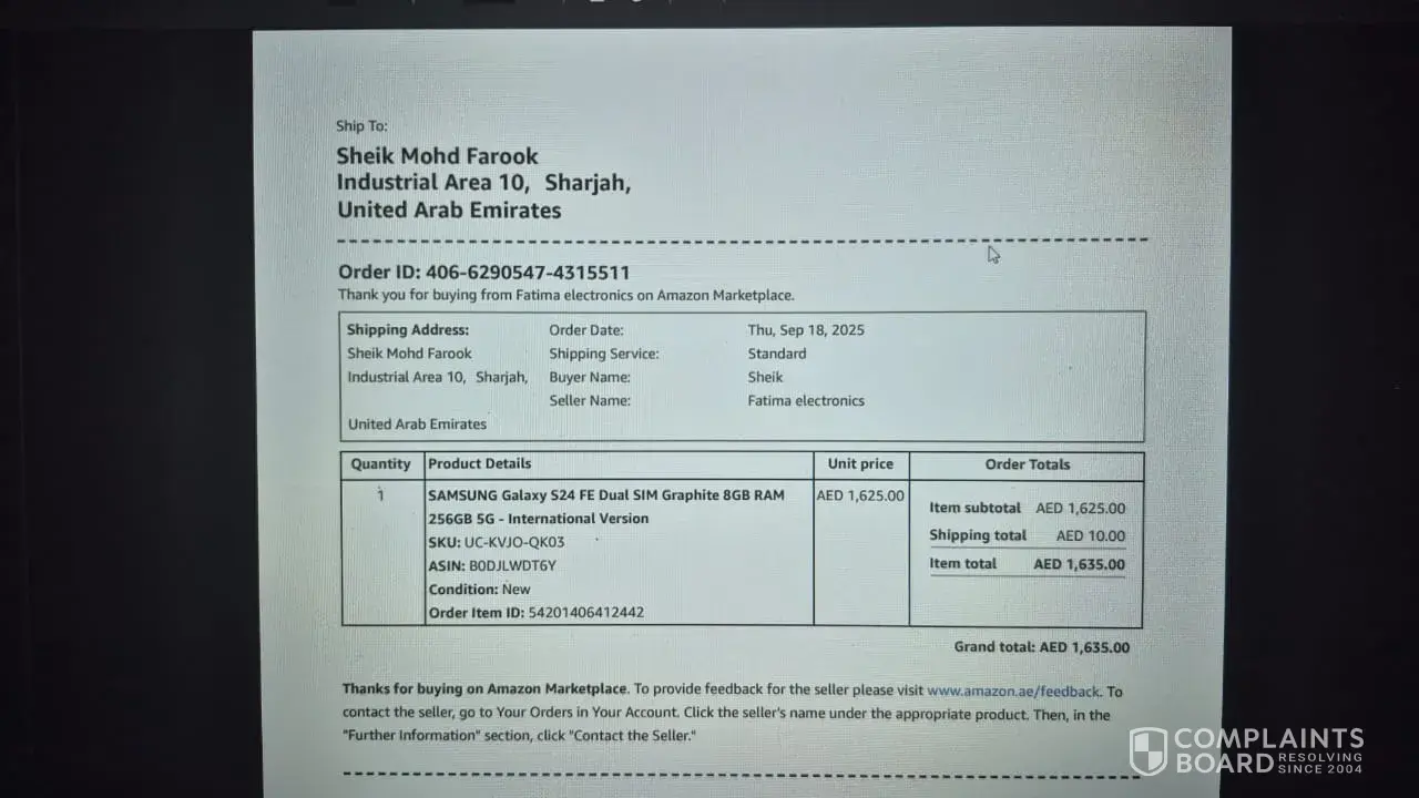 Amazon AE review: Samsung s24 fe received a stolen phone with blocked imei code requesting to share the invoice copy with imei code of the product you sold