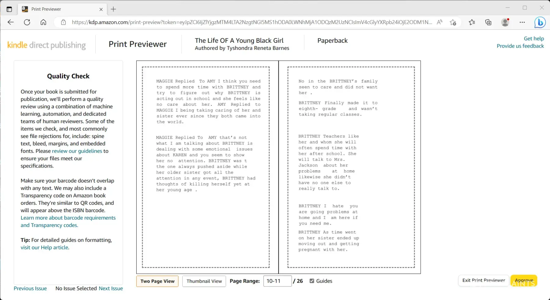 Desired outcome: I want the updated copies send for me and aftter I upload the book files again '' I Just Want To Be a Kid '' The Life of Raising Children and The Life Of A Young Black Girl '' The Broken One