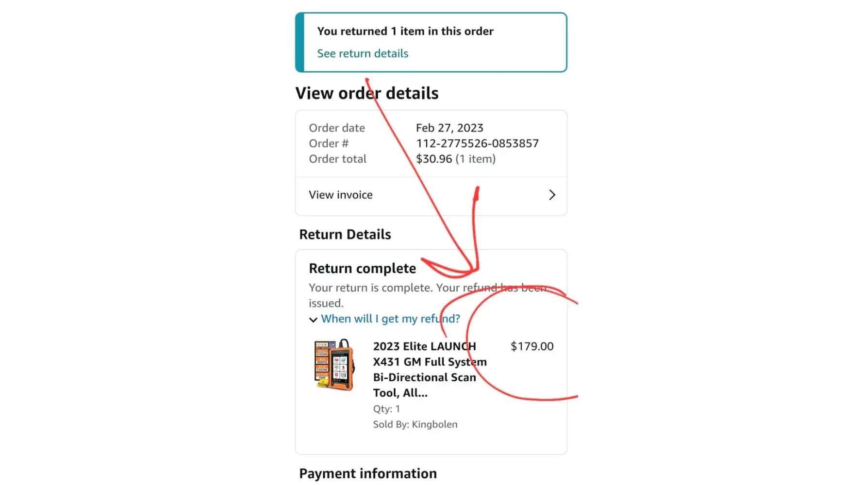 I attempted to purchase a diagnostic scan tool for my vehicle from Amazon. The first one came with zero instructions and when I attempted to download the software from the manufacture website, my pc wouldn't allow it, saying windows security blocked it for having trojans attached. So I returned it. I then purchased another diagnostic scan tool. That didn't work either, it wasn't for my specific vehicle even though the Amazon ad said it was. After contacting the manufacturer to get help and them telling me my that their scan tool in fact does not work for my vehicle I returned that one as well. After a long wait I was finally issued a refund. Only instead of being refunded back on my debit card like I asked, I was given an Amazon credit. A partial amazon credit at that. The purchase was for $179 for whatever reason and without explanation I received $145 amazon credit. I am so tired of going around in circles with Amazon that I just gave up and accepted it.