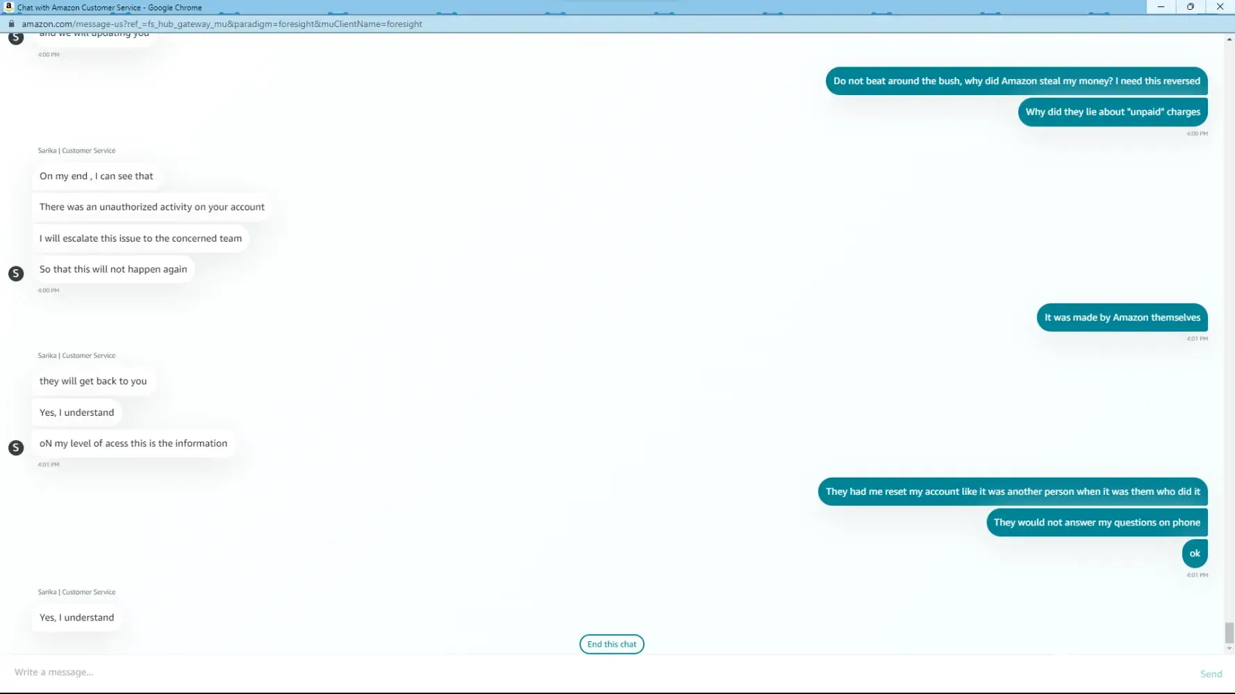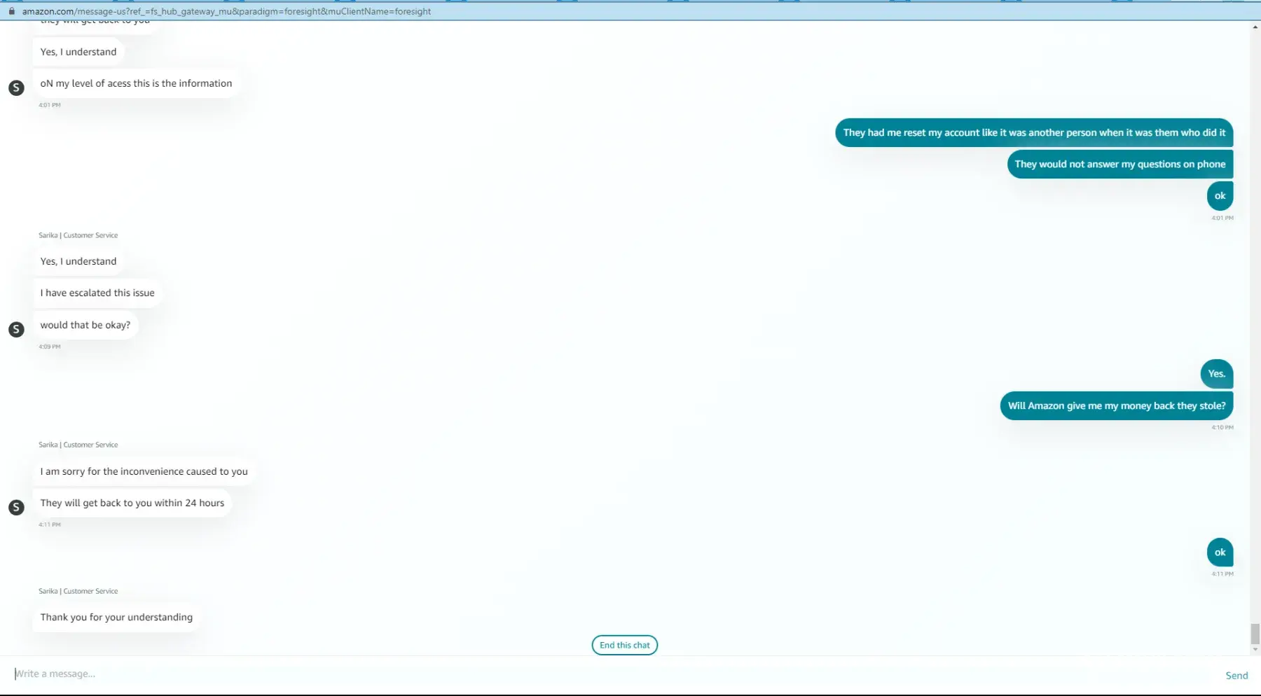 We’ll never know, because Amazon customer service doesn’t disclose any details to me (I assume the same is true with you) and their customer service is a true joke. The rudeness and disrespect I experienced on 4/17/23 by an Amazon CSR was absolutely mind blowing. Good luck, I hope you get your money back. I’d still recommend filing complaints with the regulators, and WA state AG.