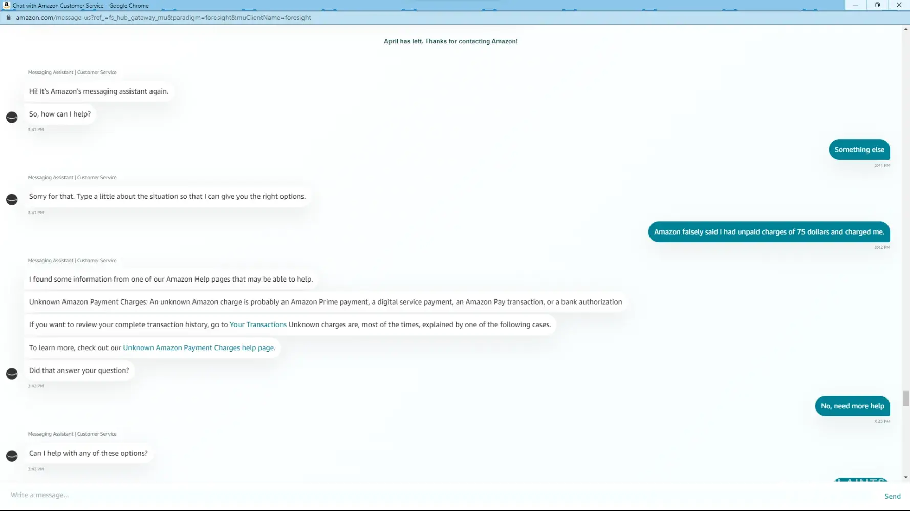 Desired outcome: I just want my money refunded. Not be asked to pay for something I never received. An apology from Amazon would be a nice start instead of their rude and threatening emails. I am closing my Amazon account.