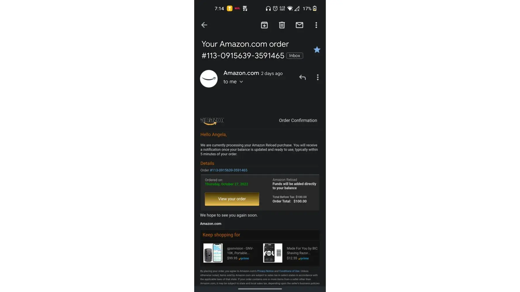 Amazon Advertising Support — Original Message — Hello from Amazon Advertiser Support,