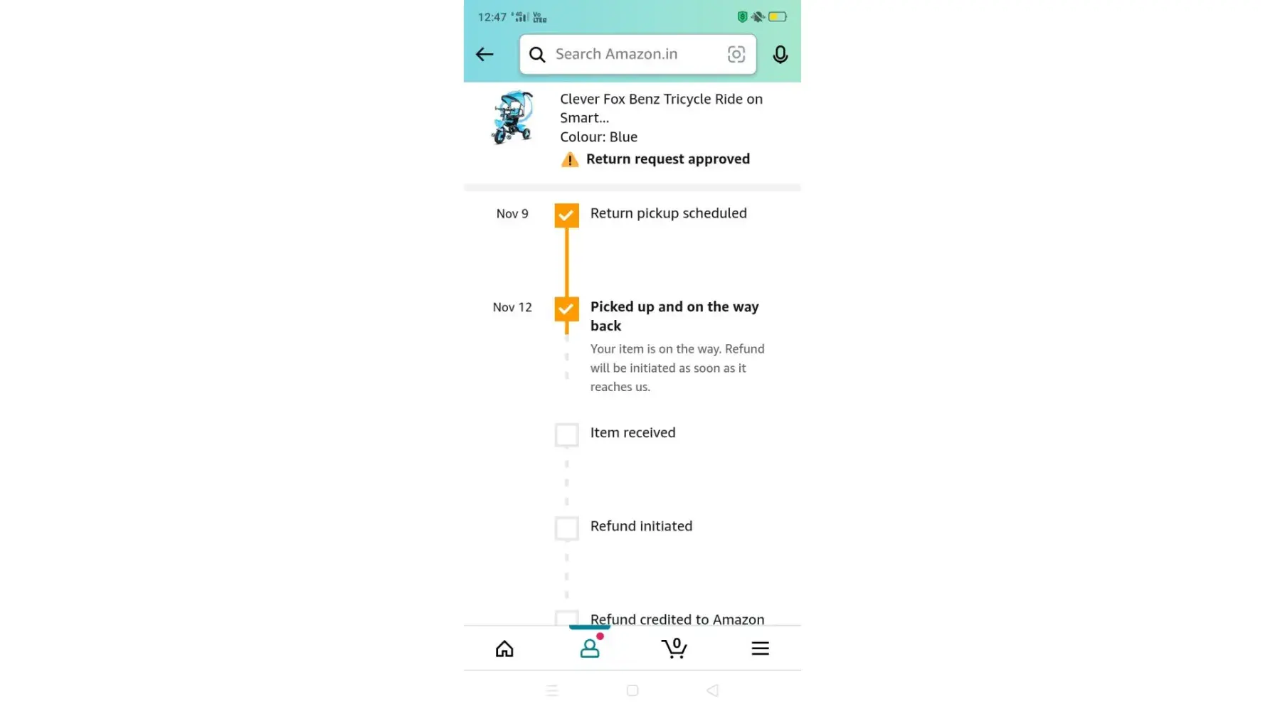 Desired outcome: This product return on 12th nov delivery boy pick but my refund money not retrun 10 days are complete please fast my return money 10 days are complete i am comfortable this service please solve my complaint and my money return