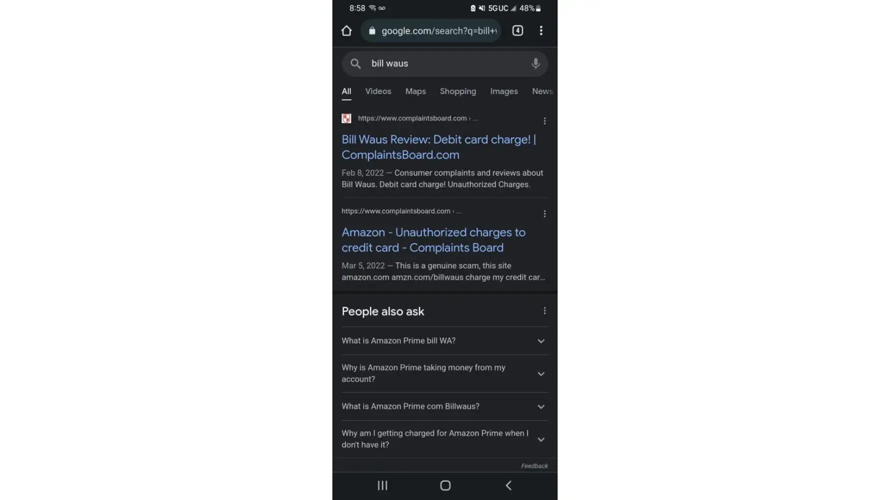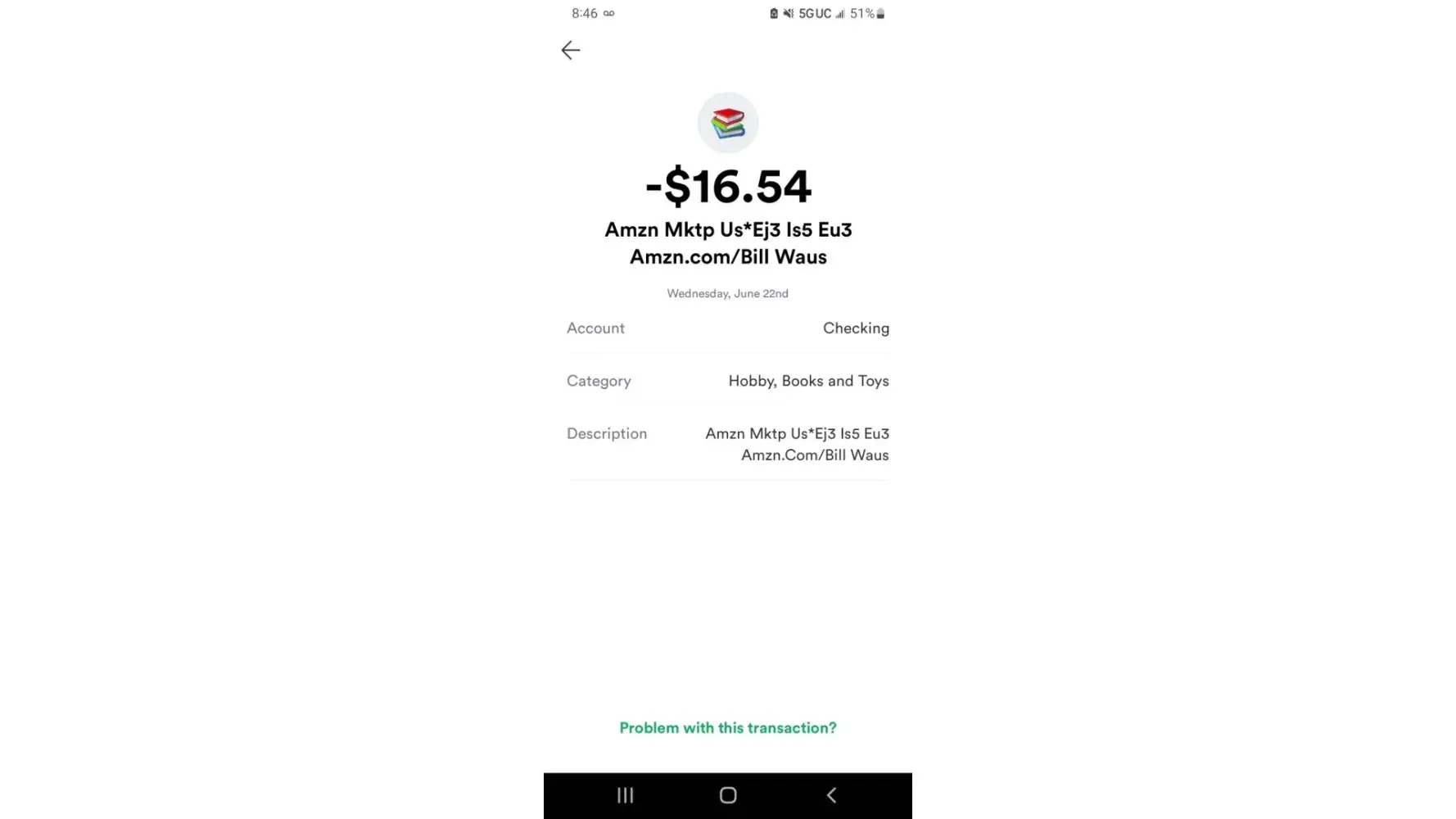 I found I have a charge on my bank card from Amazon marketplace and there is no transaction record to connect it to because I have made no such purchase. I've done a small amount of research before ending up here and the name BILL WAUS, comes up multiple times over with similar stories. This occured on June 22, 2022 for a grand total of $16.54 which had an impact on my account in a negative way.