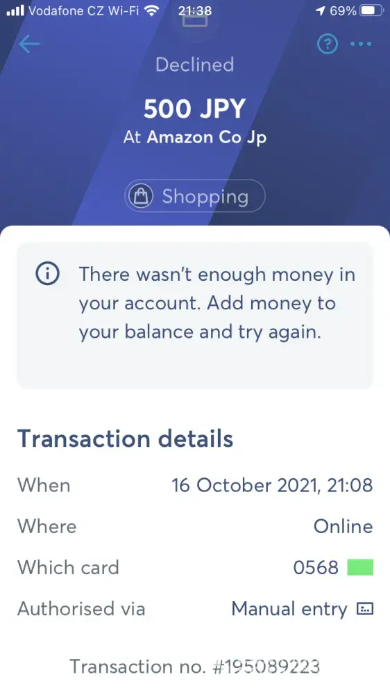 I made a single purchase on May 16th, 2021 while in Japan for only JP500 yen using my debit card no. [protected].