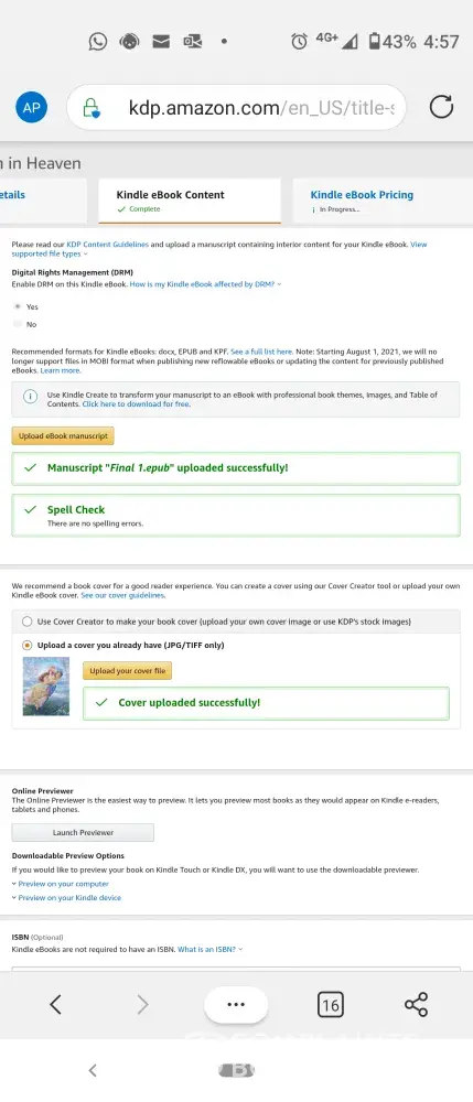 I would like to make a complaint regards to my published book by Amazon Direct Publishing tool. The book was originally published in Word format not on the base of my imagination, when I checked on what was published I unpublished it. Then I several times uploaded without success the epub version, it always displayed final1. epub uploaded successfully, but still the deformed version was there of course I think in order to humiliate me. After several tries I succeeded and the good version, which I also reviewed and screenshoted, it was kept there for 2-3 days, but today again after checking the wrong format has been there for my humiliation and humiliation of my work. Why that wrong version is never removed from there, tell me? What are these tries? Why should I check always if there are not scamming me again and again? Can anyone explain me this nasty behaviour? Why they don't keep there the normal beautiful perfect epub version? I'm asking for confrontation with the responsible person for this scam and financial compensation, I have proofs