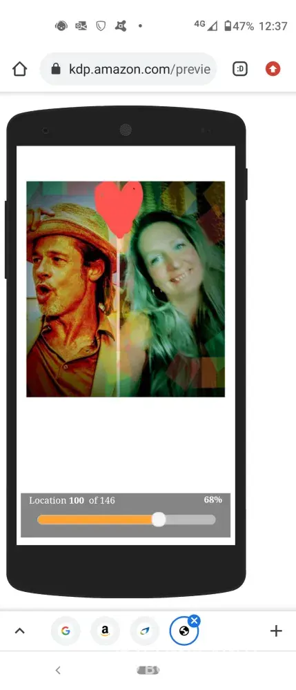 Author: Brad Pitt & Aniko Puky: Our Kingdom in Heaven: Handsome King. I emphasize it's total humiliation of a publicly well known person and of course me. Every time I should check on it?, once it's published in its normal version then should stay there so. And Google Play Books on the base of your Amazon Kindle Book link let me to publish again, they asked for a link of a site where it has been published already/ another proof/, so it was at the time of their verification in normal readable epub state. Take a look at the preview proof and the first 3 screenshots and compare. The 9th says epub uploaded successfully, number 4.5, 6, 7 are the screenshots of the published epub.