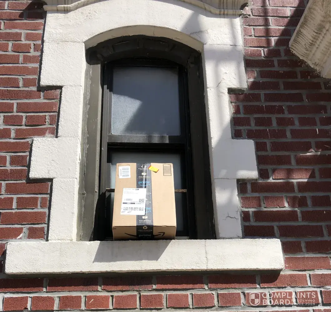 One day i came home and I saw a package (not mine) on the edge of the bathroom window of my apartment, outside of the building