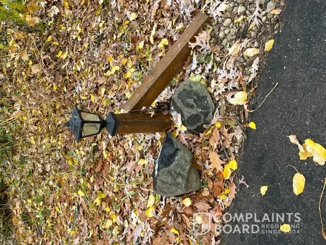 Claimed loss: Cost of 2 solar lights and wood to replace / labor.