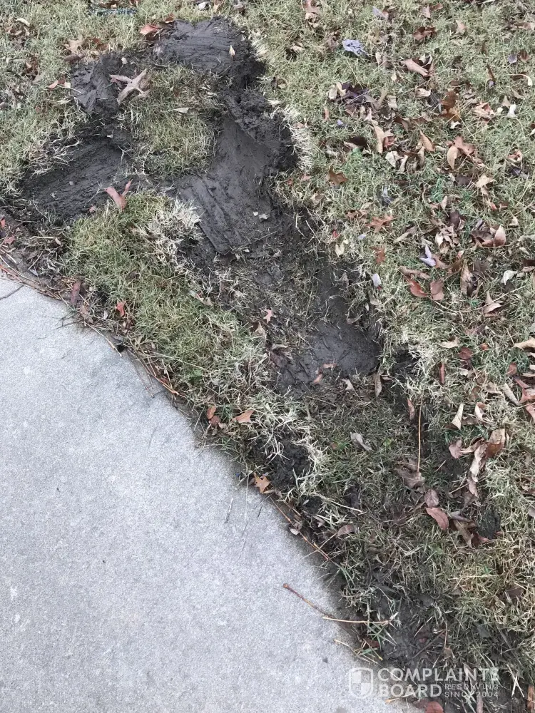 When retrieving my mail on Dec 10, 2020, I saw a DEEP rut (6 inches) in my presteen sod lawn. We live in a cul de sac.
