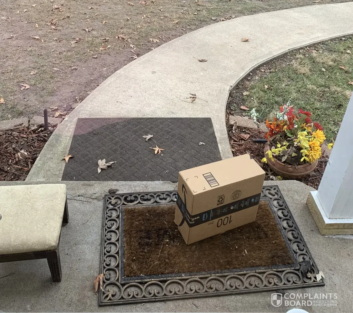 Once again, your delivery driver set my package up as a display for anyone to see by standing my package up on the end of my porch. And he didn't knock on my door or ring my doorbell, so it could have sat out there until I happened to see it. It is no wonder that packages are stolen off of porches. Then, if it were stolen, I would be expected to prove it? Not fair.